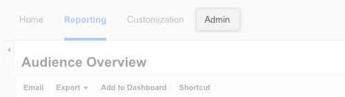 1) Sign into your Google Analytics account and click Admin in the upper right-hand corner.